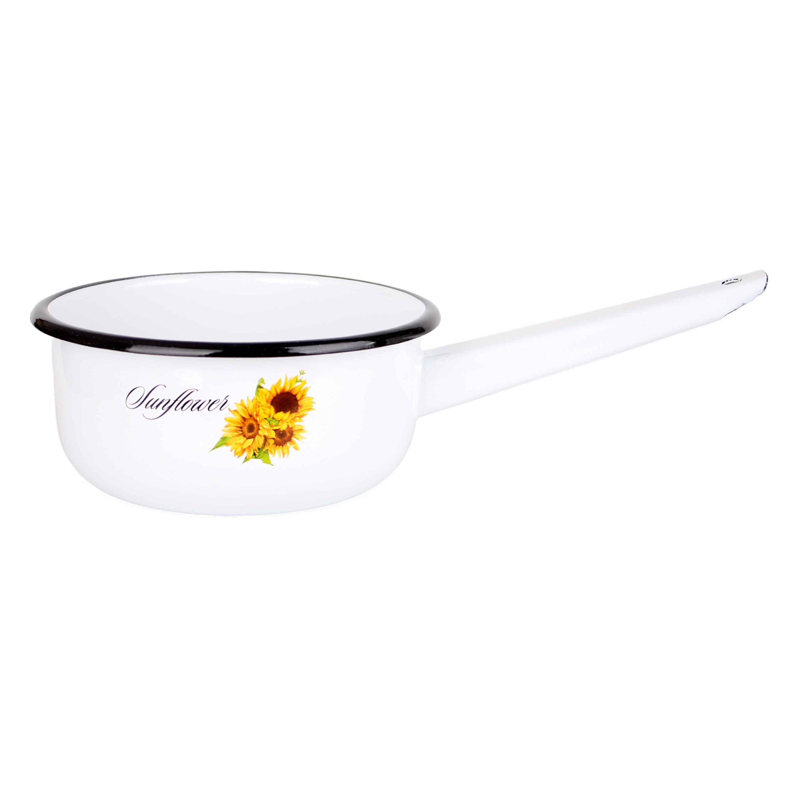 Smaltovaný rendlík TORO s motivem slunečnice je ideální volbou pro rychlé a pohodlné vaření menších porcí. Hodí se na ohřev mléka, přípravu omáček, pudinků, kaší nebo menších polévek. Díky praktické rukojeti umožňuje snadnou manipulaci i přelévání obsahu bez zbytečných komplikací.